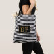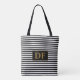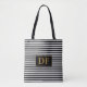 Custom Initial Black/White Stripes Tote Bag