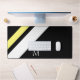 Introducing our Custom Initial Yellow and White Diagonal Lines on Black Background Design, a striking composition of vibrant yellow and crisp white diagonal lines set against a bold black backdrop, complete with the personalised touch of an initial, resulting in a modern and impactful design that exudes character.