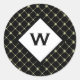 Add your own initial to this sticker with a simple small cross pattern in golds on black. Click Customise It to change fonts, background colour, add text and more, even save your design for later.