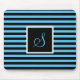 Custom Initial Letter Blue and Black Striped Mouse Mat