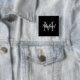 Custom Initial Monogram Script Name Personalised Black Template Elegant Trendy Square Button.