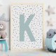 Custom initial print with a fun and trendy polka dot background. Dress up your baby's nursery or kid's room with this stylish modern monogram initial print. A personalised name print makes a great gift for new moms or a kids birthday gift. Change the colour of the large initial to match your decor by selecting by clicking the "edit using design tool" button under "personalise this template.