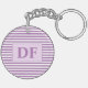 Custom Initial Purple/White Stripes Key Ring