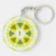 Custom Initials Bright Yellow Green Geometric Magic Summer Star Dopamine Dressing Keychain. A pretty, vibrant art design key ring. A lovely, cheerful, and pretty design to accessorise your dopamine boosting fashion. Bring modern magical, summertime vibes to your aesthetic. A great gift for a person who loves maximalist colour. A cute, budget friendly gift for someone who has just left home and needs their own keyring for their first house. Customise it by changing the initials on the front and back.