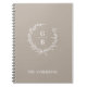 Keep your notes, ideas, and memories beautifully organised with this personalised monogram notebook. Designed in a modern neutral taupe background with a delicate white botanical wreath, this spiral-bound journal features custom initials and your family name or text on the cover. Perfect as a stylish everyday notebook, wedding planner, or thoughtful gift.