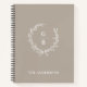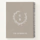 Keep your notes, ideas, and memories beautifully organised with this personalised monogram notebook. Designed in a modern neutral taupe background with a delicate white botanical wreath, this spiral-bound journal features custom initials and your family name or text on the cover. Perfect as a stylish everyday notebook, wedding planner, or thoughtful gift.