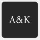 Custom Initials on Black Wedding Square Sticker
