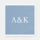 These custom wedding or event napkins feature a clean, modern, and elegant design. Sample initials of the bride and groom are printed in the centre in a sophisticated white font. The background is a dusty slate blue colour. You can personalise the napkins to include your own custom initials or other text of your choice.
