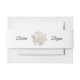 Custom invitation belly band shown in a lovely gardenia flower print with sample names.