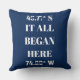 A beautiful way to remember where it all began by customising this design with your own coordinates. Search for your coordinates on a mapping site and simply customise the text, latitude and longitude numbers to create your own personalised design. A warm navy blue colour in the background making it ideal for any home decor.