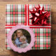 Contemporary classic Christmas holiday season ornament card with ivory cream off-white coloured mandala wreath on a classic pink background. With option and room to customise the text, family name and year date, and add a personal photo of your choice on the front, and a customisable season greeting message on the backside of the card.