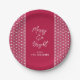This personalized Christmas paper plate features a refined Asanoha geometric pattern in delicate white lines over a deep, festive red background — blending modern minimalism with timeless beauty.