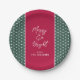 This personalized Christmas paper plate features a refined Asanoha geometric pattern in delicate white lines over a deep, festive red background — blending modern minimalism with timeless beauty.