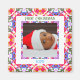 Custom Jolly and Festive Christmas Photo Picture Frame Square Magnet. A colourful and bright fridge magnet. Replace the photo and text with your own to celebrate your Yuletide memories. Give as a stocking filler keepsake gift to family and loved ones. In warm winter colours of red, green and orange and purple. With hints of icy blue. A budget friendly present for grandparents, parents, couples, siblings and best friends. A merry and bright colour block pattern frame borders the picture. Based on colourful, traditional designs. Use as a cheap way of decorating the Christmas or home office. Have a maximalist Christmas!