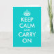 Turquoise Keep calm and carry on greeting cards. Cute vintage card for friends, family, coworkers, corporate employee, colleagues, staff, personnel, team. Personalizable text and custom background colour. Create your own keep calm and carry on parody. Great for Christmas, Holidays, celebrations etc.