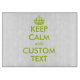 Custom Keep Calm and carry on funny kitchen Cutting Board gift. Apple green colour. Make your own Keep calm and carry on quote. Modern typography design with crown. Fun cooking gift idea for friends, family, coworkers, corporate employees, kitchen staff, personnel, nutritionist, chef, cook etc.