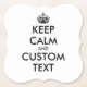 Custom keep calm and carry on funny paper coasters. Create your own humourous parody. Black and white or custom colour. Modern typography with crown.