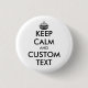 Custom Keep calm small round pinback buttons. Create your own funny Keep calm and carry on parody. Smallest size pin with modern typography and crown. Customisable template design. All colours can be changed. Fun for Birthday party, event, business, wedding etc. Office humour gift idea for friends, family, coworkers, corporate employees, colleagues, boss, volunteers, guests, clients, customers etc.
