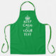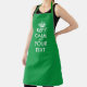 Custom keep calm and carry on large green kitchen Apron for men and women. Modern typography template with crown silhouette. Personalised cooking aprons in any colour. Trendy template with fun typography design. Add your own name or humourous quote. Create your own unique Birthday party gift for mum, grill master, dad, sister, brother, father, mother, wife, husband, friend, grandma, grandpa, kids, boss, co worker, BBQ chef, cook, colleague, wedding couple etc. Available in small, medium and big size. Also great for dinner party, baking, dish washing, art & crafts work etc. Make a his and hers for him and her. Humour presents for friends and family.