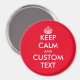 Custom Keep calm and carry on large round fridge magnet. Create your own funny parody. Modern typography template with big crown. All customisable colours. Red and white example. Personalised Birthday gift ideas for friends, family, coworker, employee, guests, clients, customers etc.