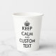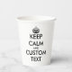 Custom keep calm and carry on paper party cups. Create your own funny parody. Modern typography template with crown. Personalised cups with your own text and colours. Double sided print. Fun for Birthday party, gathering, family reunion, corporate office party, wedding, celebrations, retirement, housewarming, engagement, bridal shower, girls night out etc.