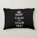 Custom keep calm and your text accent throw pillow. Black and white colour cushion for bed, sofa or couch. Create your own funny keep calm and carry on parody. Vintage keepcalm typography template with crown. Cute examples: Keep calm and party on. Keep calm and love me. Keep calm and sparkle on. Trendy home decor for men women and kids. Fun cushion with doubled sided print.