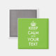 Square Keep calm and your text magnet. Customisable apple green and white template with crown. Create your own funny keepcalmandcarryon typography parody. Custom background colour. Vintage Keepcalm examples for your fridge: Keep calm and carry on. Keep calm and party on. Keep calm and love me.