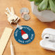 Custom keychain with funny little snow gnome troll drawing. Cute round button key chain with personalised text and colourful illustration. Fun bulk Christmas gift idea for friends, family, coworker, colleague, employee, kids etc. Add your own greeting and (business) name.