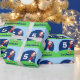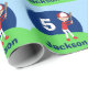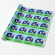 Cool custom kids sports birthday wrapping paper in green and blue featuring a little boy in a baseball league wearing a red baseball uniform. Personalise with your child's name in blue and his age in white on the blue sky. A great baseball themed birthday party gift wrap.