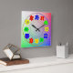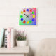 The design is vibrant and playful, showcasing twelve (12) customisable typography fields with Arabic numerals, accompanied by bright red, blue, green, and yellow jigsaw puzzle pieces serving as hour markers. Minute ticks add intricate detail, all set against an enchanting backdrop of soft, pastel rainbow hues. The twelve jigsaw puzzle pieces can also be personalised, allowing you to replace them with personal photos or children’s artwork of your choice.