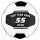 Custom Soccer Ball with Team, Name, Number, for a Soccer - Football Player. The design is black and white and the text is in trendy white colour on a black background. Personalise the soccer ball with the team name, team number and player`s name. Great for a soccer player, soccer lover, as a gift or a keepsake ball.