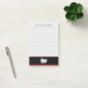 Lined stickies with custom script text at the top for your name, optional lines and an elegant set of black and white silverware on a napkin at the bottom on a red and black ribbon on a light grey background.