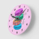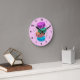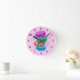 Custom kitchen wall clock with French macaron art. Personalised kitchen wall clock with colourful macaroon drawing. Customisable pink background colour. Cute decoration gift idea for pastry chef, cook, mum, mother, aunt, sister, daughter, wife, friend, bakery shop owner, sweets lover etc. Square or round version. Add your custom quote or name. Pretty watercolor drawing of macaron cookies stacked in a tower.