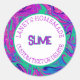 My daughter and I created this groovy cool swirl design in pink purple, blue and green. You can customise this sticker for your slime party or your slime business. The fun text in purple says " Laney's Homemade slime". This sticker or label coordinates with the invitations for a girls slime birthday party. This wavy retro funky design is great for a fun vibe. All the text can be customised. Have fun.