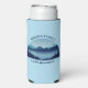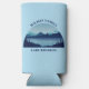This cool custom lake house seltzer can cooler features a serene blue river surrounded by trees and your personalised text for a family reunion, camping trip, or summer vacation. Customise with your last name or other group name.