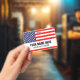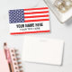 Custom lanyard name badge with United States flag. Plastic tags with metal clip on and lanyard cord option. Customisable text. Add a photo on the back optionally. Useful ID tags for office, volunteer work, events, meeting, gathering, 4th of July party, festival, sports teams, clubs, political delegation and more. USA pride flag of America.
