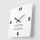 Custom LARGE 10.75" SQUARE Wall Clock, Grade-A acrylic Blank Template. AD LIB Font - Main Quarter Hours Templated Only (12, 3, 6 & 9). All hours option also available in the Shop plus dozens of font options. CUSTOMIZE: Simply select "Customise" then delete "CUSTOM Template" & begin to personalise your clock. IF YOU WISH TO CHANGE THE SIZE OR COLOR OF THE NUMBERS: Simply "select all" in Edit Options, then click on the Font Size or Colour drop down menus to change them. Design your own personalised, customisable wall clock. All font and style options available as templates. Great for a birthday, Christmas, Father's Day, Mother's Day or other celebration gifts for him, her, a teenager, a boss, work colleague, a friend, or for your home or office.
