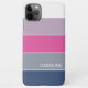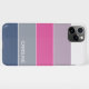 Keep your new electronic device safe from scuffs and scratches with this protective snug cell phone case, made with a stylish and classy chic contemporary classic dark blue, grey, violet purple, and bright pink coloured block stripes pattern design. With room to customise with a name of your choice. This design is available for Apple iPhone 6, 7, 8, 10 or X, XR, XS, 11, 12, 13 Mini, 14, 15 Plus, and Pro Max cellphone cases. Show off your style, look fashionable trendy, and feel stylish with a unique design on a mobile device accessory of your choice.