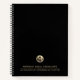 Custom notebook designed for law firms, attorneys and legal professionals featuring a solid black background, company name and contact information in classic golden typography. The brushed gold legal-themed logo can be used as is or replaced with your firm's logo. Organise your thoughts, ideas, and important information in style.