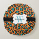 Custom Leopard Orange, Black, Aqua Round Pillow