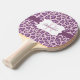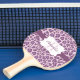 Cool animal purple and lavender leopard print ping pong paddle with print on both sides, front has a purple stripe with a white edged with purple banner you can personalise with your monogram initial and name!