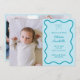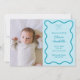 This Custom Light Blue Bow Wavy Boho Collage Baby Birth Announcement card is modern and minimalist. The fully customisable card features a vertical photo on the front with your baby's name, birth stats, and parent names. The back showcases a three-photo collage. Perfect for sharing your joy, this minimalist coquette design is ideal for gender-neutral baby announcements. Celebrate your newborn with this simple and elegant announcement card.