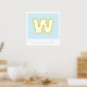 Custom Light Blue Name & Monogram Retro Nursery Foil Prints
