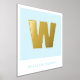 Custom Pastel Blue, Gold Foil & White Name & Monogram Retro Nursery Foil Prints