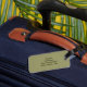 Luggage tags help you identify your luggage, backpacks, gym bags, golf bags and more from other bags on the luggage carousel, train or bus, and prevent loss. Easily and quickly pick your bag out of the herd with this luggage tag that has a unique design on the front and the back for your name, address, city, state and zip code information. Change the text in the fields provided. You can change font style, size, and colour.