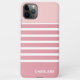 Contemporary minimalist light dusty rose and blush pink coloured horizontal stripes pattern. With room to customise with a name, monogram, or initials of your choice. Beautiful, modern, and cool cover for the trend-savvy and art-loving hip trendsetter, artsy motif lover who wants to protect their phone from dust and dirt, wear and tear. This design is available for Apple iPhone 6, 7, 8, 10 or X, XR, XS, 11, 12, 13 Mini, 14, 15 Plus, and Pro Max cellphone cases. Show off your style, look fashionable, and feel stylish with a unique design on a mobile device accessory of your choice.