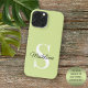 Contemporary girly cellphone case with room to customise with name, monogram, or initials of your choice on a pretty light summer chartreuse lime green yellow coloured background. Beautiful, modern, and cool cover for the trend-savvy and art-loving hip trendsetter, artsy motif lover who wants to protect their phone from dust and dirt, wear and tear. This design is available in Apple iPhone 6, 7, and 8 Plus, 10 or X, XR, XS, 11, 12, and 13 Mini, 14, 15 Plus, and Pro Max cellphone cases. Show off your style, look fashionable trendy, and feel stylish with a unique design on a mobile device accessory of your choice.