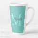 Custom Light Teal Monogram Initial Letter Name Elegant Trendy Template Large Coffee Latte Mug.