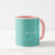 Custom Elegant Monogram Initial Trendy Template Light Teal Pink White Combo Coffee Mug.