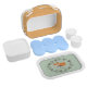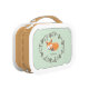 This customized lunchbox is as cute as its pictures, and the frame itself is more colorful and attractive than pictures. It has not yet been used so can't review durability. The production was super-fast, but shipping did take much longer than expected. Custom product shipped two days after order, but package took ten days after that to arrive. In the same period I received several other orders shipped standard from other services in two or three days. cute font, goes with overall style, but tiny print. My child did not notice her name was on the box until I pointed it out.